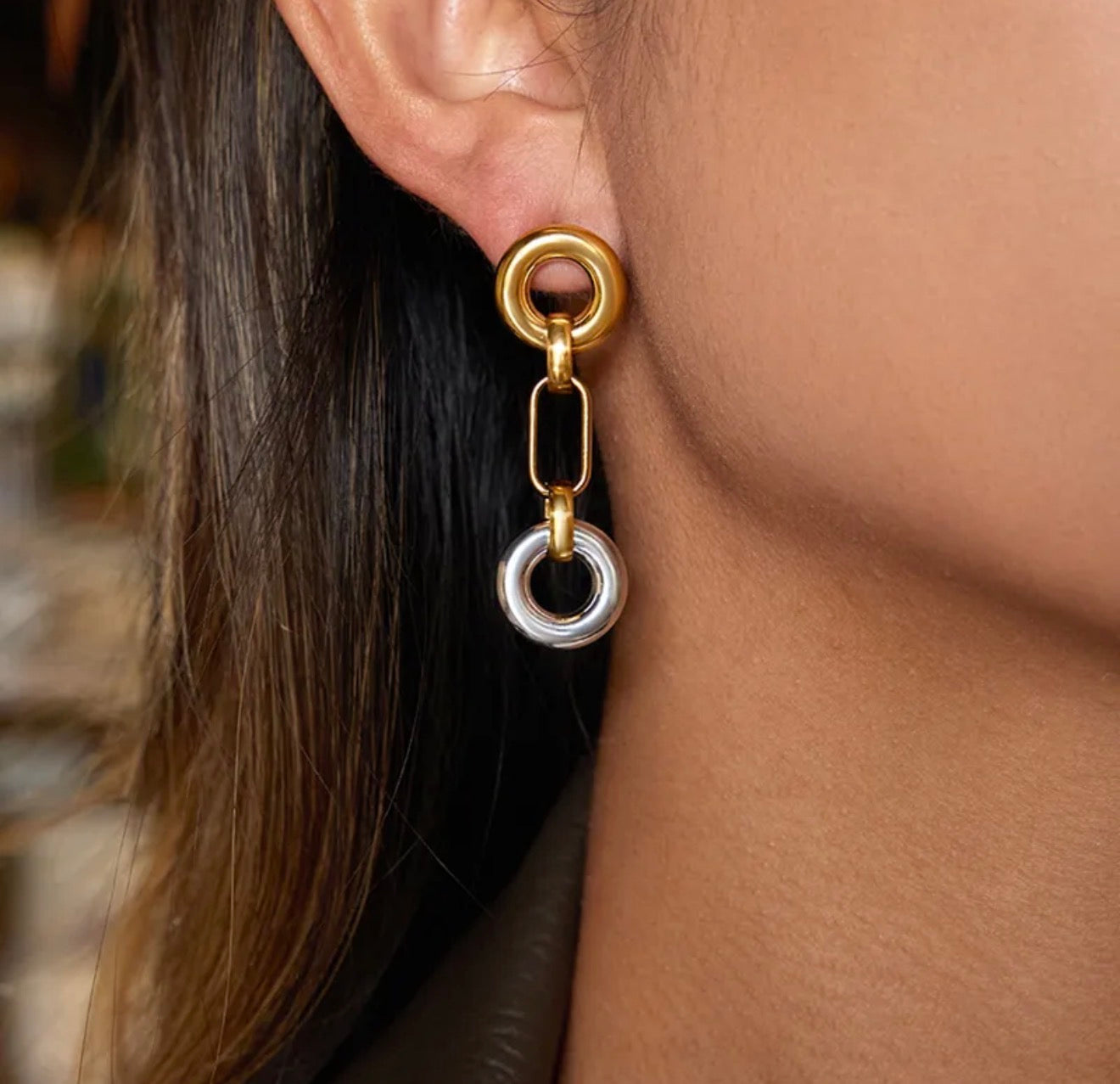 Hermosos aretes dos tonos acero inoxidable