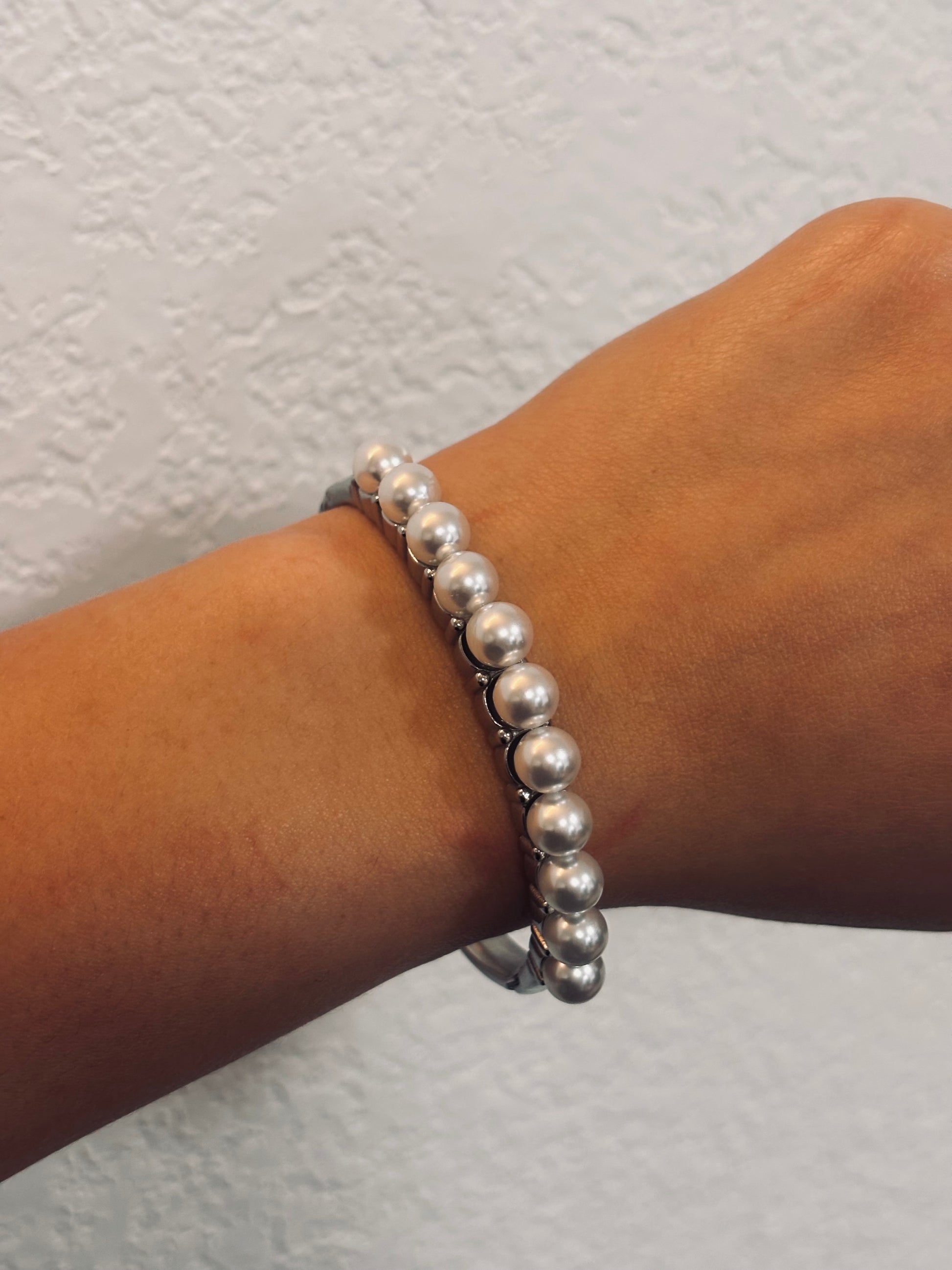 Brazalete en oro y plata stainless steel con detalles de perlas